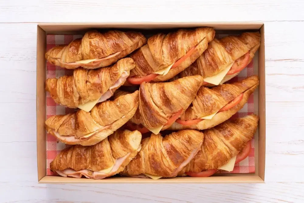 We recommend one and a half croissants for each person for the ultimate savoury satisfaction. Our croissants come in biodegradable boxes, which removes environmental concerns. As a result, you have one less thing to worry about and can enjoy your office morning tea to the fullest!