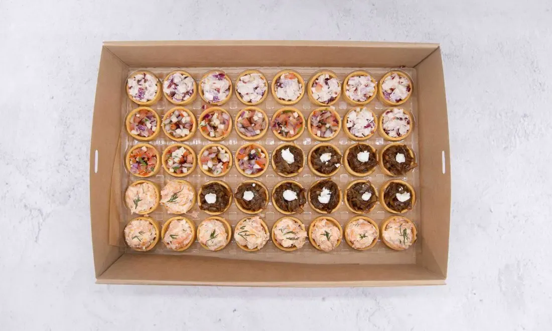 Our Handmade Savoury Tart Collection comes in four delectable flavours and two sizes. This is another excellent collection of Halal finger foods that can serve large groups. It might be just what you’re looking for to serve at your festive office tea!
