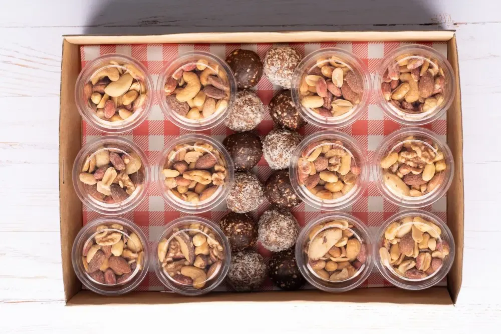 Our Ultimate Naked Power Cubes box wraps up our Christmas morning tea food ideas for your office event. This box of handmade sweets is vegan-friendly, low in calorie count, and topped with excellent taste.