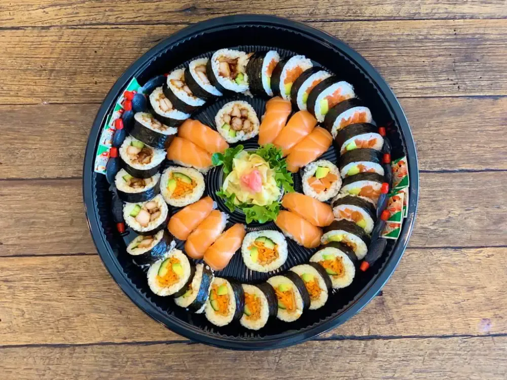 A typical sushi platter offers an assortment of beautifully crafted maki rolls, fresh sashimi, and vegetarian sushi. So, your guests and employees can choose whatever they find fascinating.