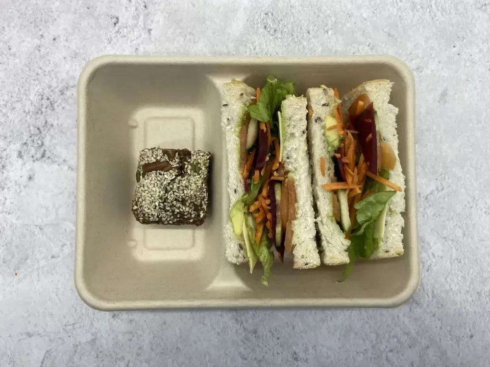 Pair your sandwich with our house-baked chocolate brownie – a sweet indulgence that will leave you wanting more. Whether you're looking for a wholesome meal or need quick bite-sized treats, the Sandwich & Sweets Lunch Pack covers you. Enjoy the convenience of having delicious sandwiches and delectable sweets in one pack!
