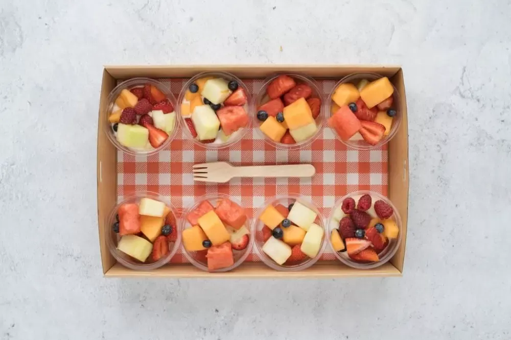 Our Fresh Fruit Cup is a vibrant mix of seasonal fruits, including juicy strawberries, berries, and more. It's a refreshing, healthy, and naturally sweet treat that's perfect for a light, dairy-free snack at the workplace.
