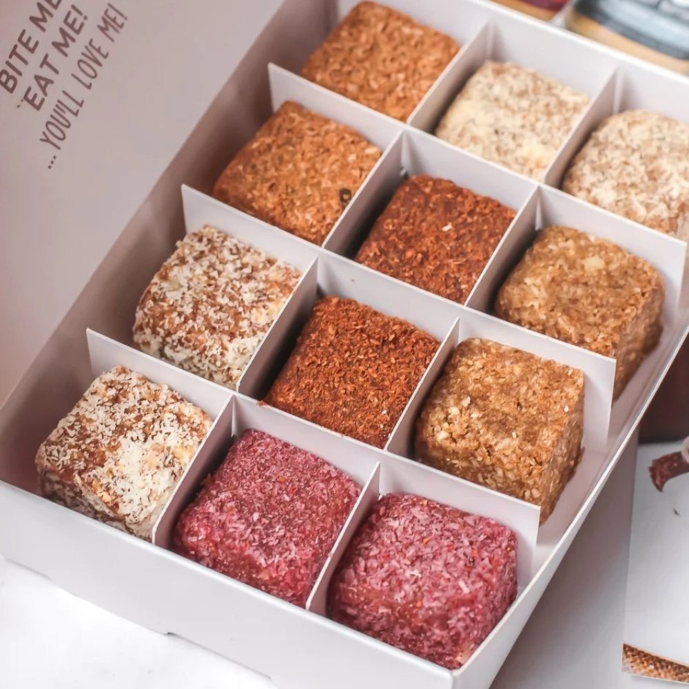 These slices are perfect for anyone avoiding both dairy and gluten. You can choose from healthy and flavour-packed options like cacao, coconut, hazelnut, and more.